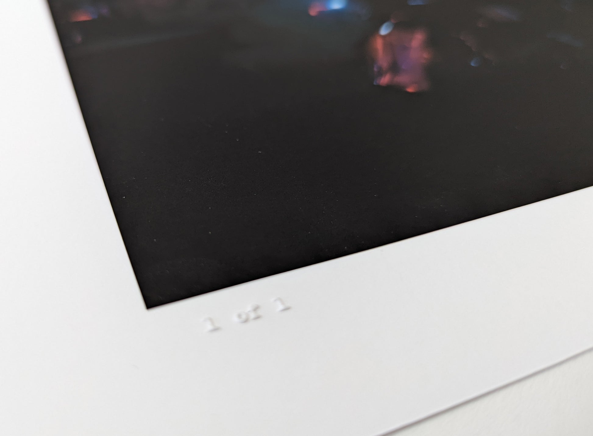 This is a 1 of 1 edition giclée fine art print titled "does not damage the structural integrity". Since the imagery was created digitally, this is the one an only version that exists in material form.