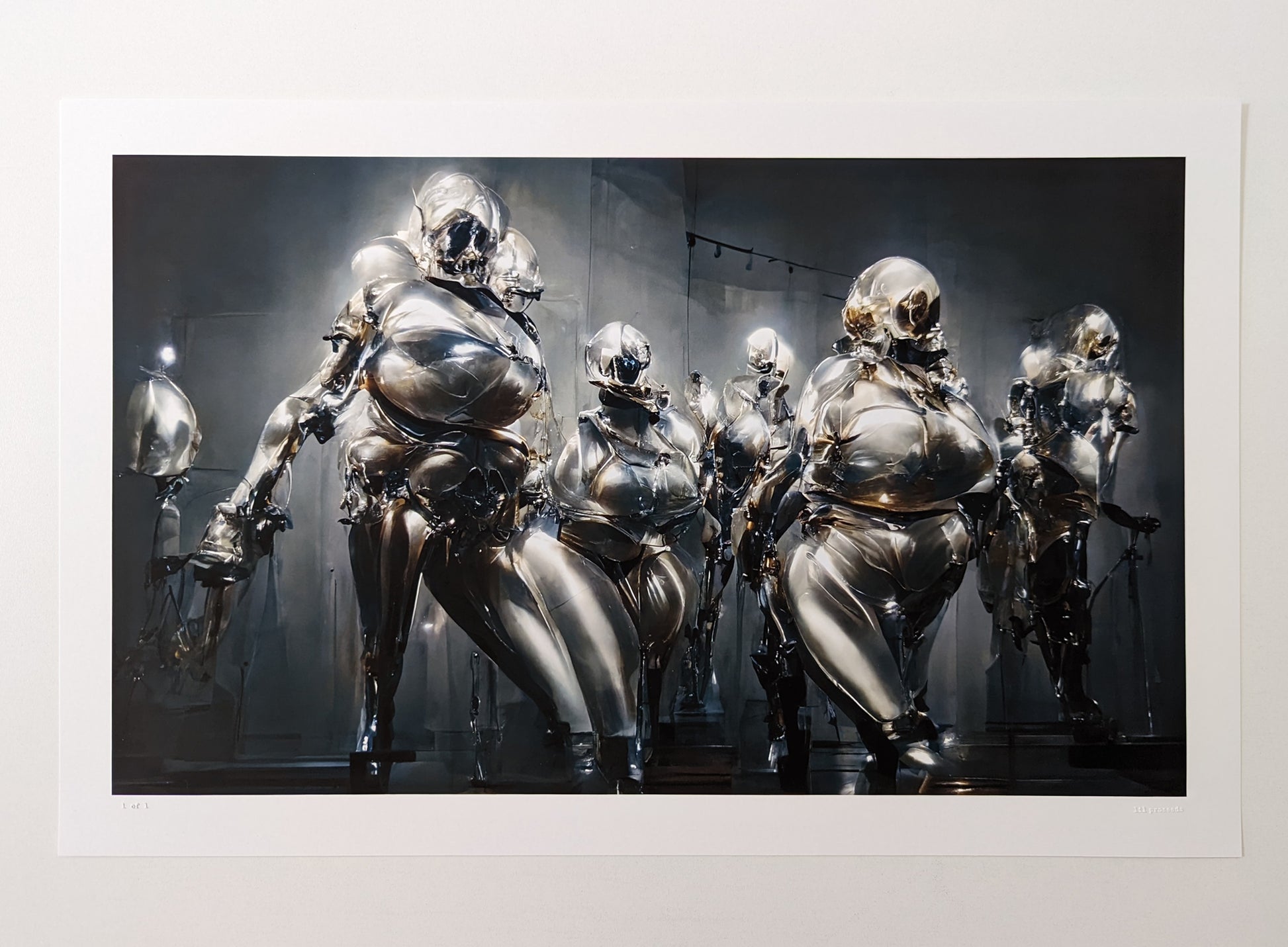 This is a 1 of 1 edition giclée fine art print titled "nothing can stop us getting more". Since the imagery was created digitally, this is the one an only version that exists in material form.