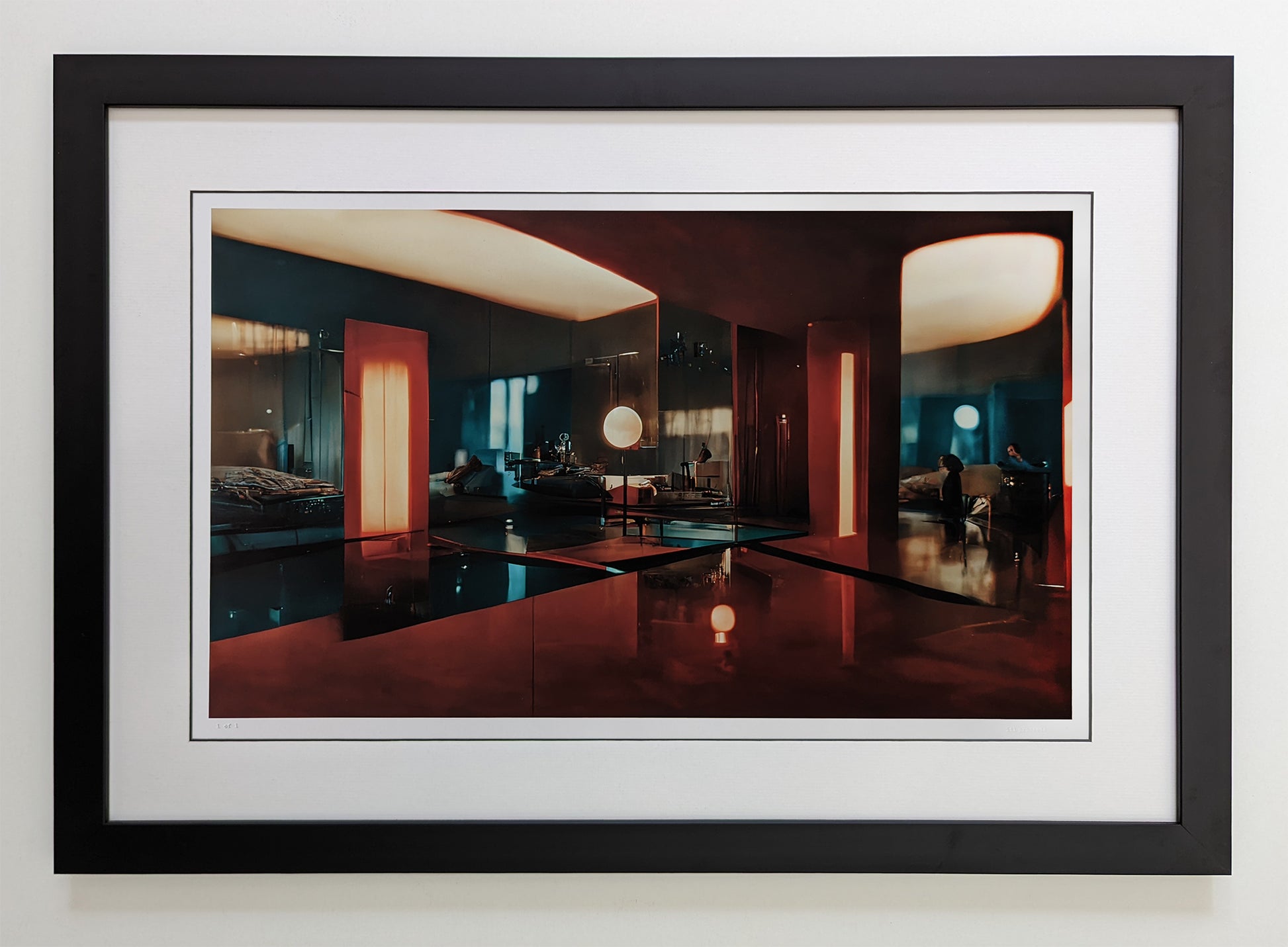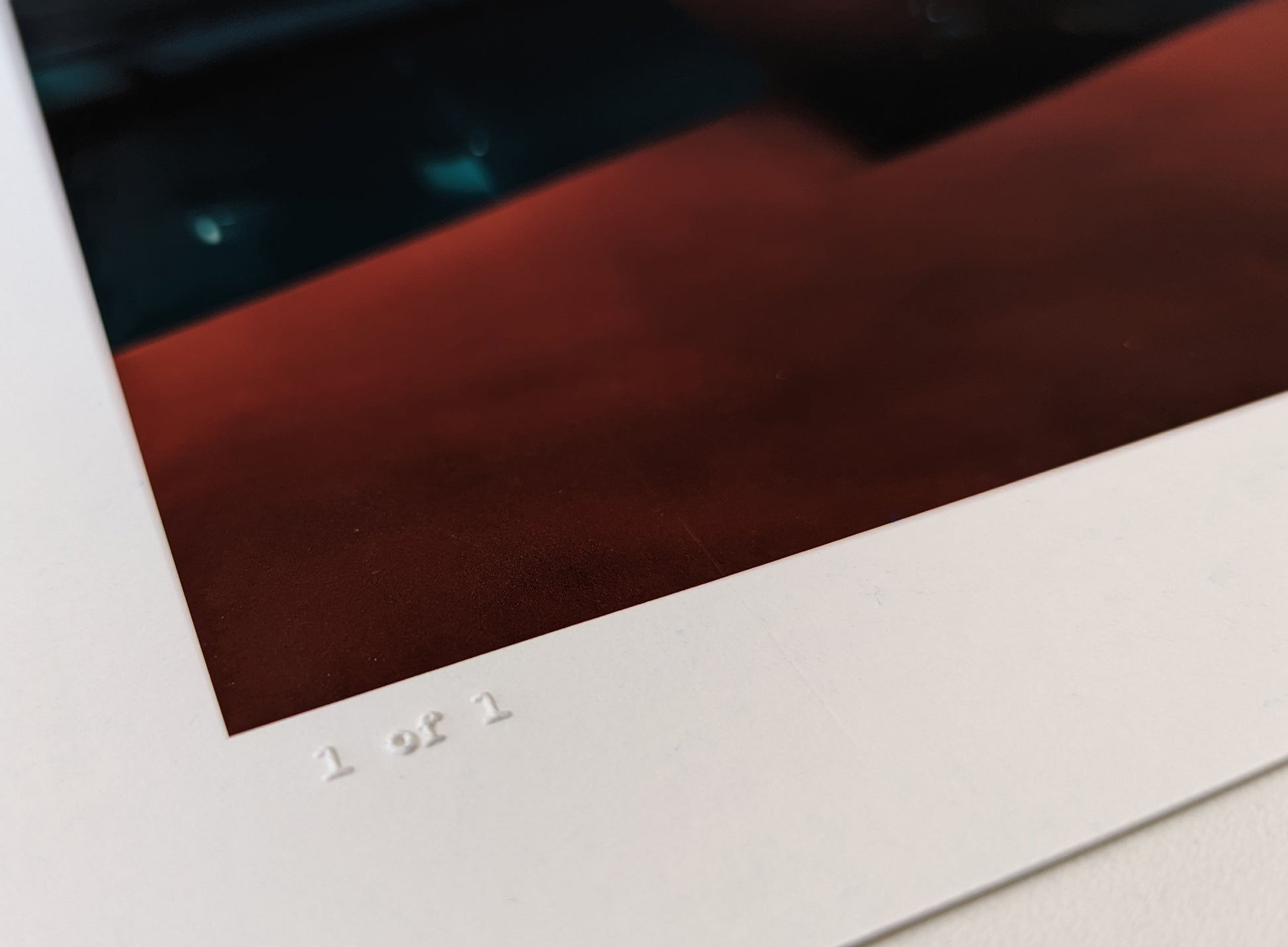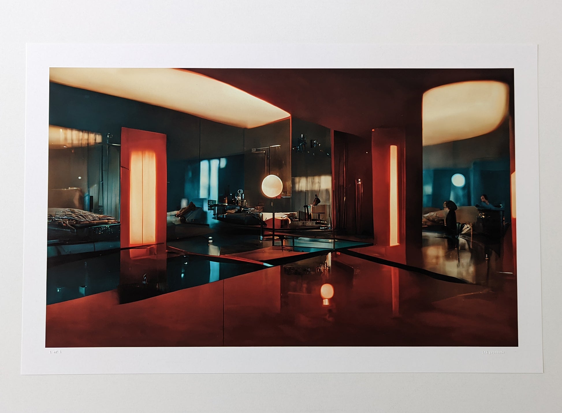 This is a 1 of 1 edition giclée fine art print titled "there is no room in here for sanity". Since the imagery was created digitally, this is the one an only version that exists in material form.